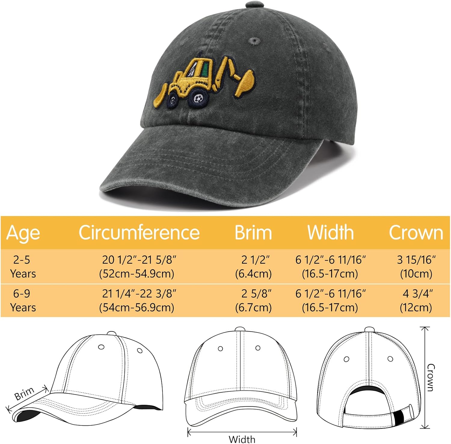 Embroidery Excavator Kids Baseball Cap for Age 2-5,Adjustable Vintage Washed Cotton Toddler Baseball Hat for Boys & Girls